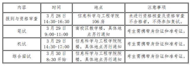 本次复试采用现场复试方式,考核形式为专业课笔试、机试(085400电子信息专业-人工智能方向考生无需机试)和专业综合面试。
