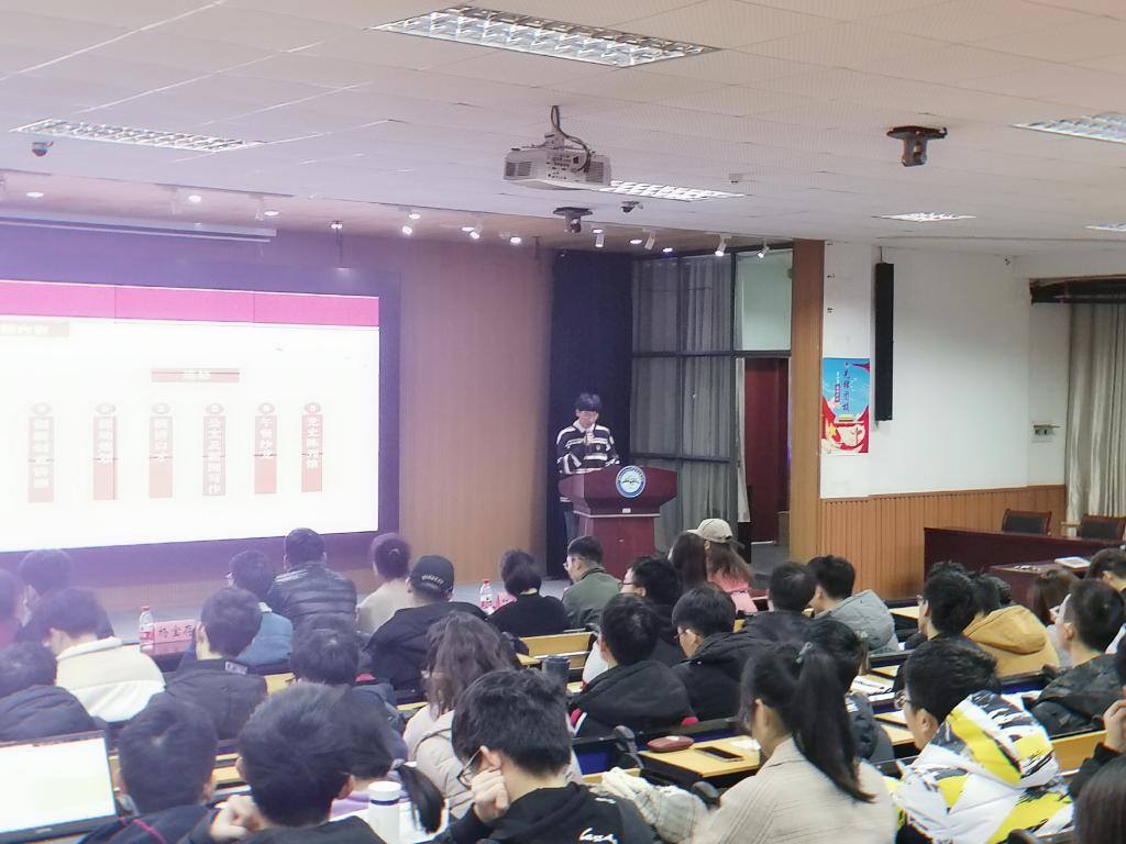 接下来是团委组织部副部长李杭轩同学为大家详细介绍本届春晓计划先锋团校的活动流程以及各个课程的内容,让大家对近期的课程规划有了更深入的了解;并且由团委组织部干事李牧宇同学对课程考核方式及成绩评定进行介绍,让同学们对于本次活动的计分方式有了更清晰的了解。