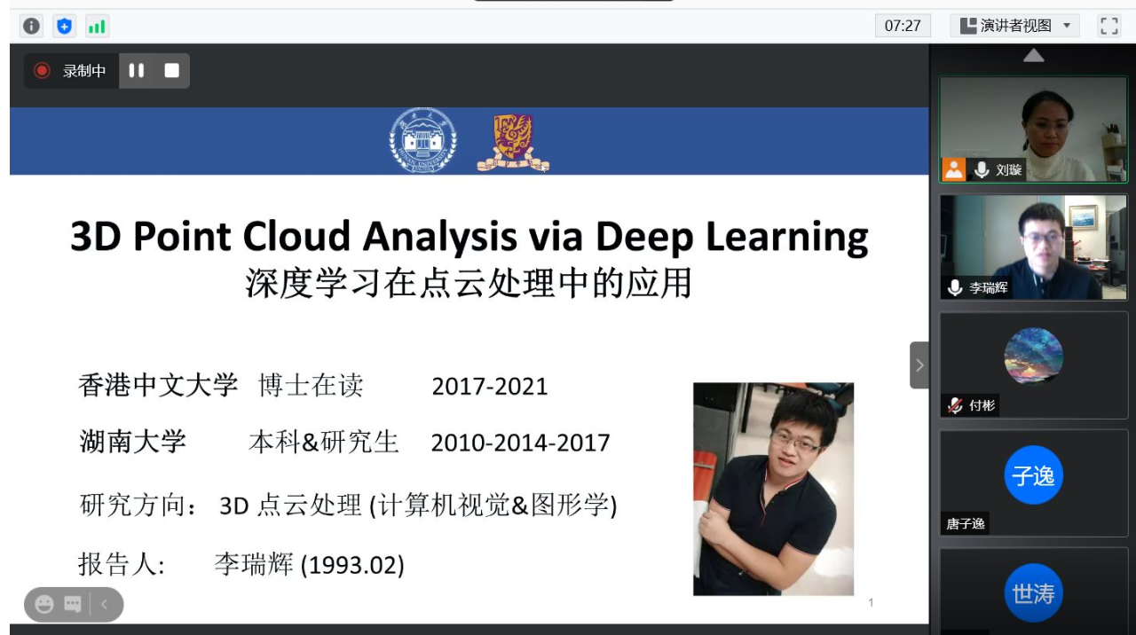 26日下午,由刘璇院长助理主持,五名分别来自香港中文大学、南洋理工大学、东京大学、新南威尔士大学、特伦托大学的优秀青年学者在分论坛线上进行了学术报告。学院160余名老师和学生参与了线上活动,大家在热烈的对话与交流中分享了科学研究的累累硕果。
