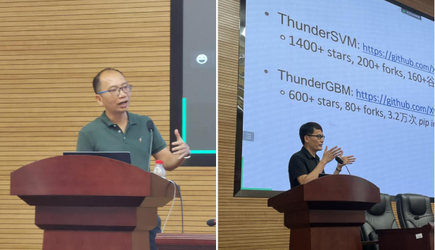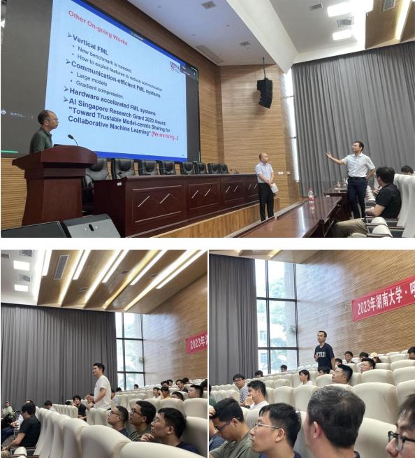 ,并于学院201报告厅分别展开了题为《联邦学习系统:数据孤岛上的有效和高效机器学习系统》和《基于CPU和GPU加速的高效机器学习系统》的学术讲座。讲座由副院长蒋洪波教授主持,学院师生参加了本次讲座。
