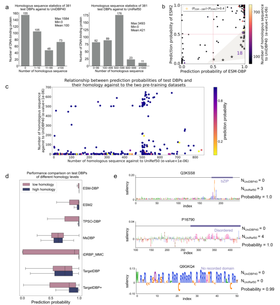 ESM-DBP在低同源蛋白上的出色表现。