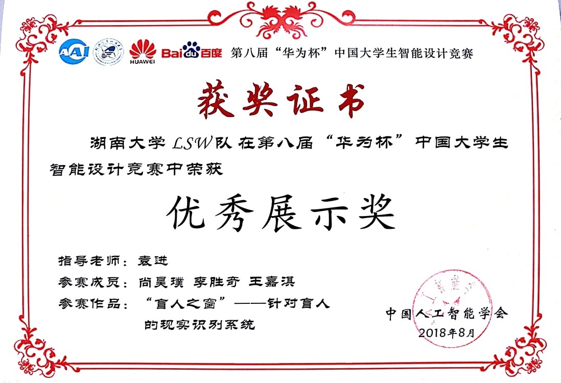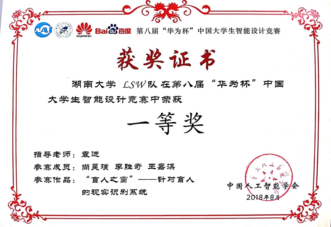 竞赛旨在展示和锻炼大学生采用智能科学理论与技术解决问题的能力,提高大学生的综合设计能力,培养大学生的创新意识、团队合作精神,促进高等学校智能及相关学科教学实践改革和学生实践能力培养。我校学生设计的作品“盲人之窗” 实现了在实时摄像条件下对周围环境的语义捕捉,并将其转化为语音信息传递给盲人,从而为盲人搭建了从黑暗世界到语义世界的桥梁。