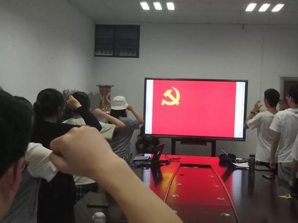 接下来,大家面对党旗重温了入党誓词,支部书记杨海龙进行述职。杨海龙首先介绍了支部的具体情况,然后重点围绕支部上半年开展的党史学习教育向大家展开汇报,最后提出了支部现阶段存在的不足。