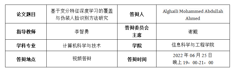Alghaili Mohammed Abdullah Ahmed博士生答辩公告