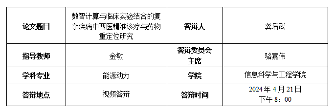金敏,龚后武. 融合GHP与GCN的中西药物重定位方法及系统与存储介质.(专利号:CN202111658146.1,授权公告号:CN114242186B,2022-08-12)[部分对应第6章研究内容, 导师一作,本人二作]