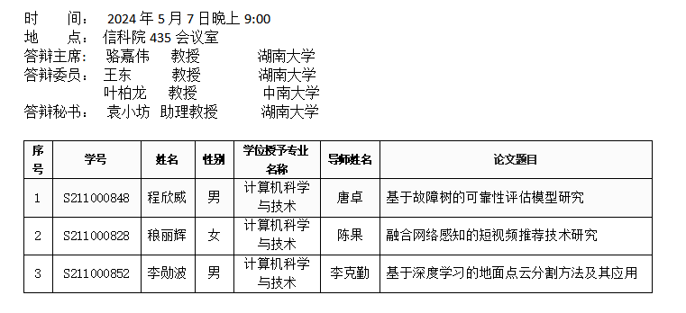 亚洲av (计算机科学系)2024年5月7日硕士答辩公告(第一批)