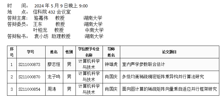 亚洲av (计算机科学系)2024年5月9日硕士答辩公告(第一批)