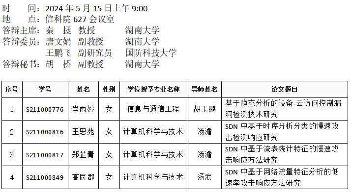 亚洲av (安全系)2024年5月15日硕士答辩公告
