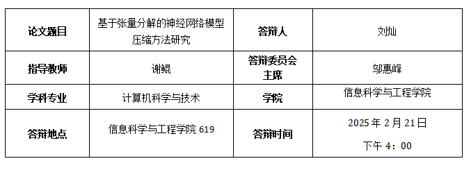 (1) 设计基于张量环分解的神经网络模型压缩算法,探索张量环分解下的最佳张量分解表示及相应最佳执行策略,以在保持神经网络性能的前提下,最大限度地降低模型的压缩率并提升计算效率。
