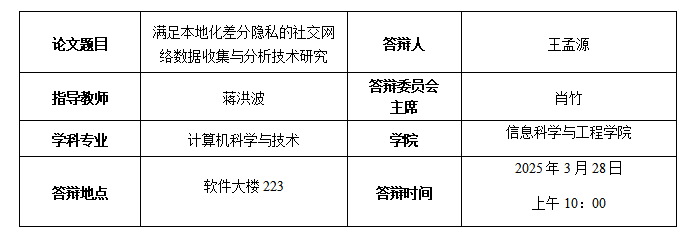 王孟源博士生预答辩公告