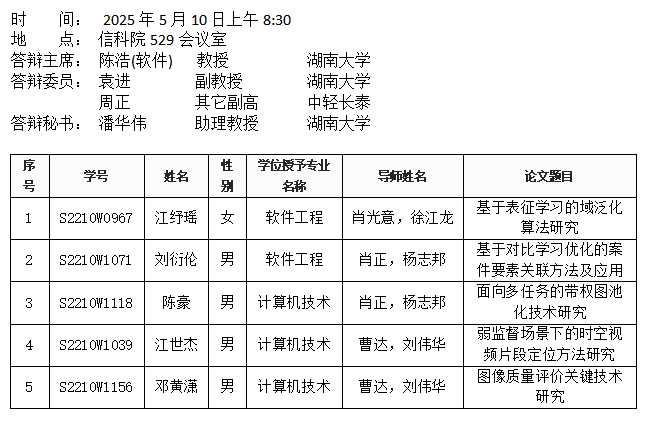 亚洲av (智能计算系)2025年5月10日 硕士答辩公告