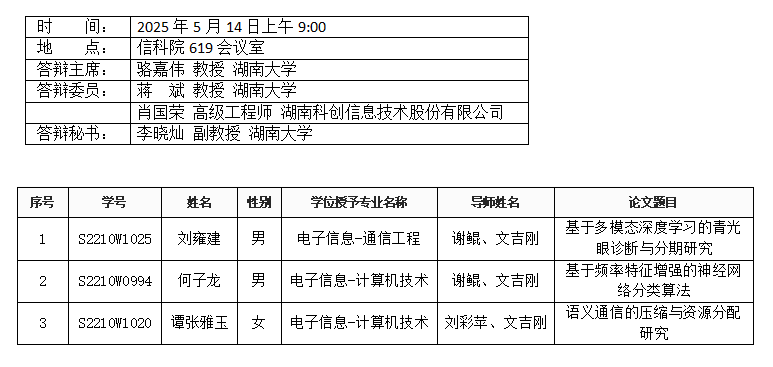 亚洲av (计算机工程系)2025年5月14日上午硕士答辩公告(1)