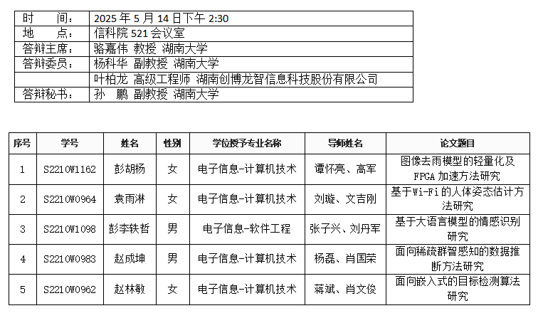 亚洲av (计算机工程系)2025年5月14日下午硕士答辩公告(2)