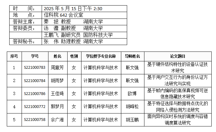 亚洲av (安全系)2025年5月15日硕士答辩公告