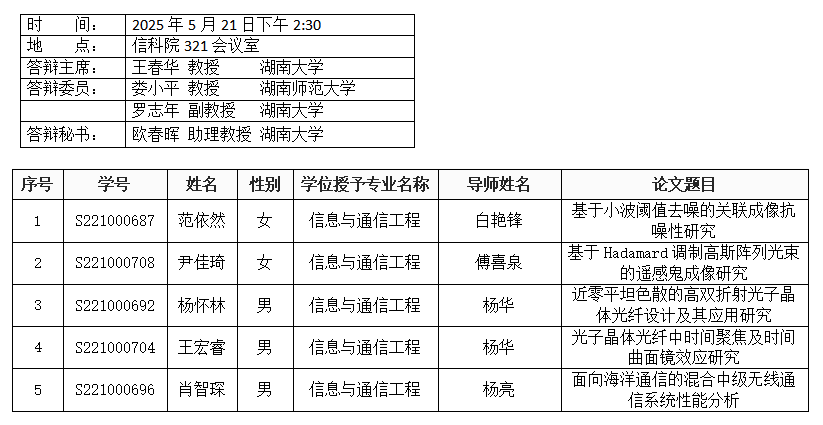 亚洲av (通信工程系)2025年5月21日硕士答辩公告