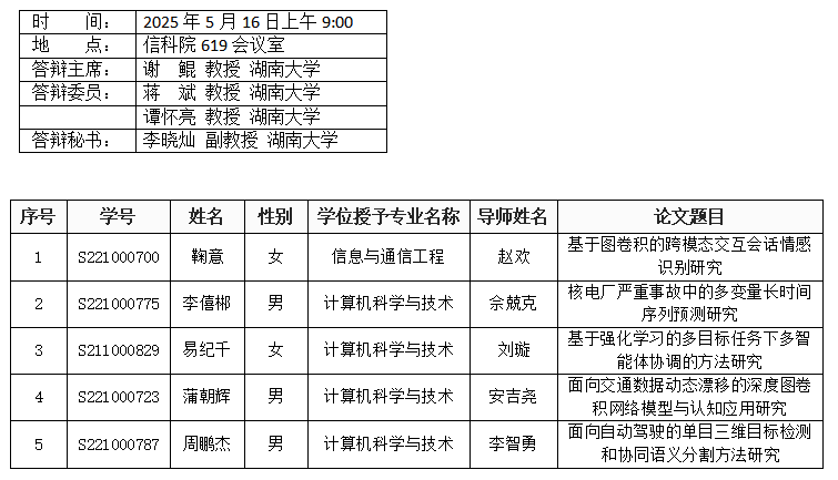 亚洲av (计算机工程系)2025年5月16日硕士答辩公告(1)