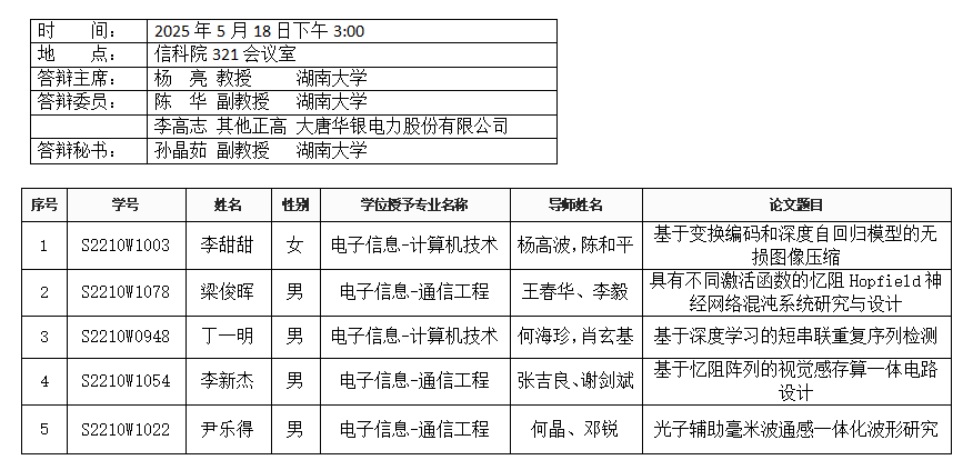 亚洲av (通信工程系)2025年5月18日硕士答辩公告