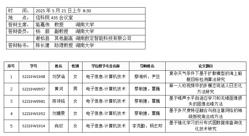 亚洲av (计算机科学系)2025年5月21日硕士答辩公告