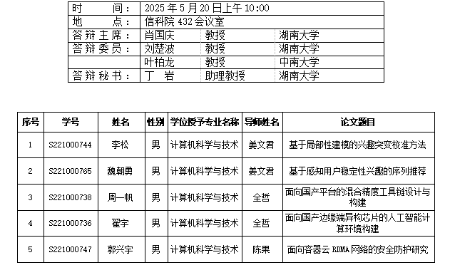 亚洲av (计算机科学系)2025年5月20日硕答辩公告(1)