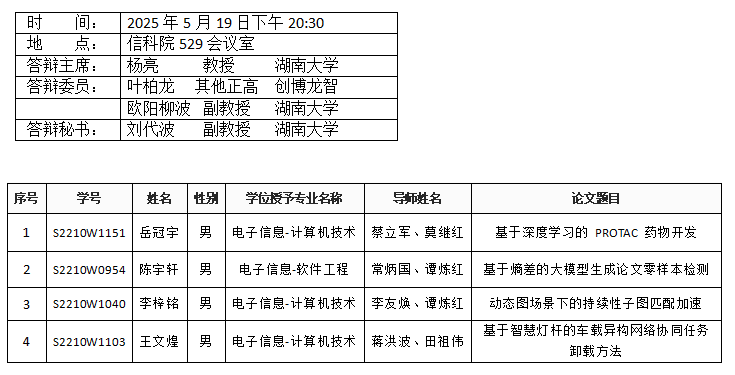 亚洲av (软件工程系)2025年5月19日硕士答辩公告(4)