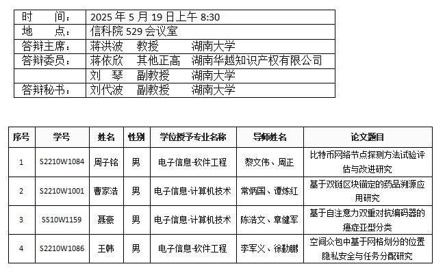 亚洲av (软件工程系)2025年5月19日硕士答辩公告(1)