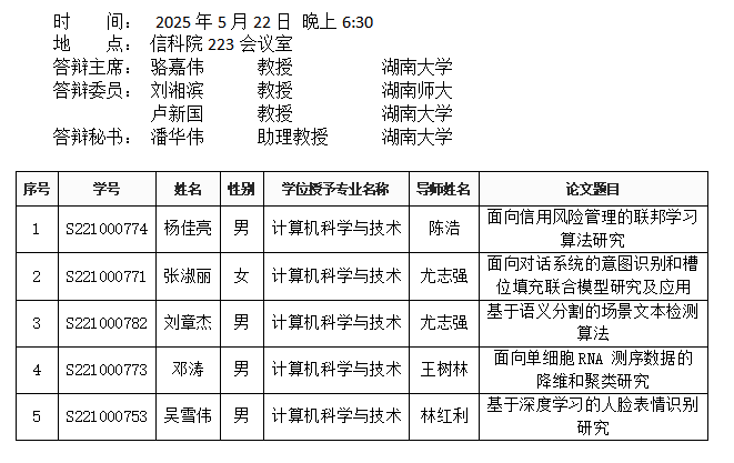 亚洲av (智能计算系)2025年5月22日 硕士答辩公告(1)