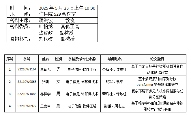 亚洲av (软件工程系)2025年5月23日硕士答辩公告(1)